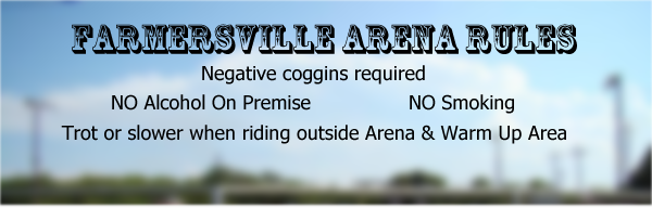 To Farmersville Riding Arena: Go to Farmersville on Hwy 380, exit south on either Hamilton, Main Street or Orange, proceed south to CR648, turn left (East) and follow around to the southeast. Farmersville Riding Arena will be on your left. Taking Hamilton would probably be the most "Trailer Happy" route.